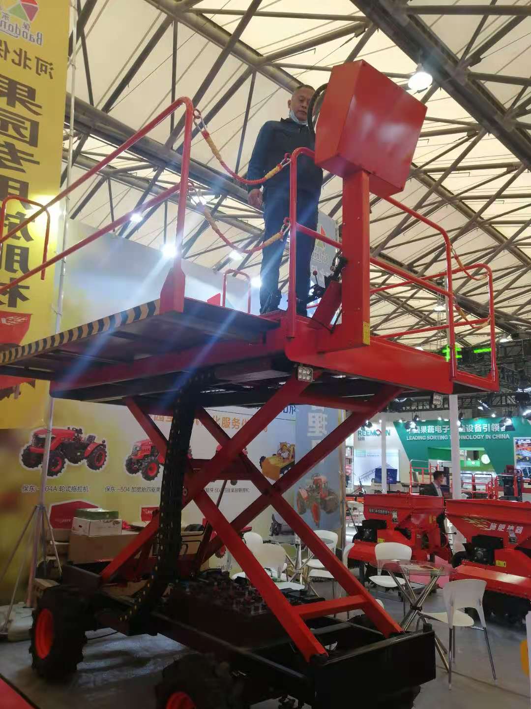 果园采摘平台是一款全液压驱动的具有高度、宽度、倾角多方位可调的,具有极强的越野能力的只能果园作业平台。平台车操作灵活、转弯半径小、四轮驱动。该机不仅可用于摘果作业,还可用于疏花,疏果,套袋,修剪等多项作业,是现代化果园的理想配套工具。