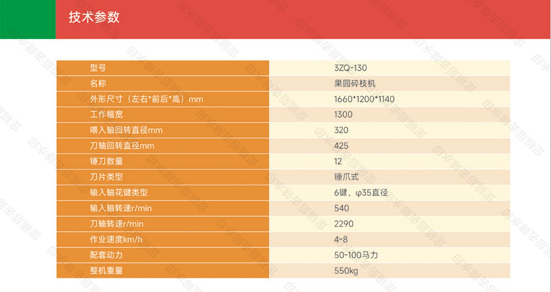 本产品可与拖拉机配套悬挂作业,悬挂支架前后方向可根据需要安装使用;可将果园修建下来的直径5公分以内的树枝,不论干湿都可粉碎还田;还可以将直立或倒伏的玉米秸秆、棉花杆、油菜杆、高粱杆等秸秆粉碎还田;另外还可用于葡萄藤粉碎作业等。