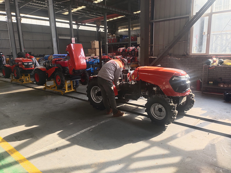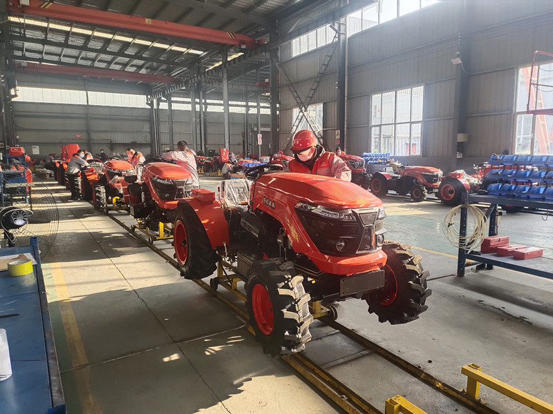 在河北保东农业机械有限公司总装生产线上,广大员工正在装配各型号的果园大棚王拖拉机。