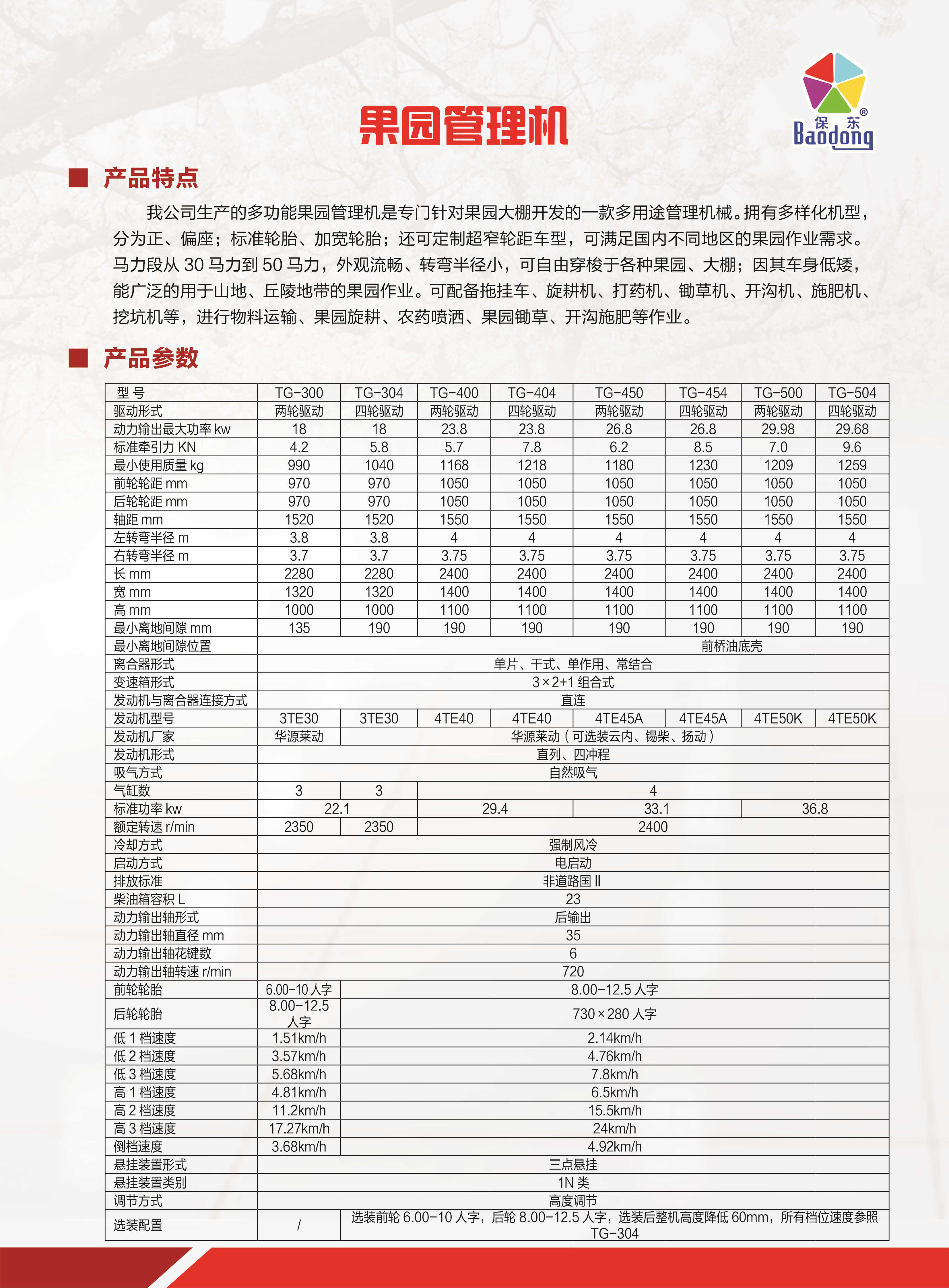 该机型经优化设计,充分加强拖拉机的农艺性能、技术经济性和安全舒适性。整机设计合理,拖拉机综合性能优越,适应性强,利用率高,可满足果园、平原、丘陵、山区、牧区、菜园等机械化要求,广泛应用于各种田间作业(耕地、耙地、旋耕、播种、打药、开沟、田间管理等)。