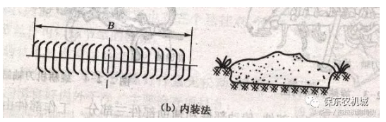 刀片都朝刀轴中间弯,该装法耕后中间有垄,起填沟作用。