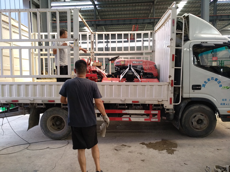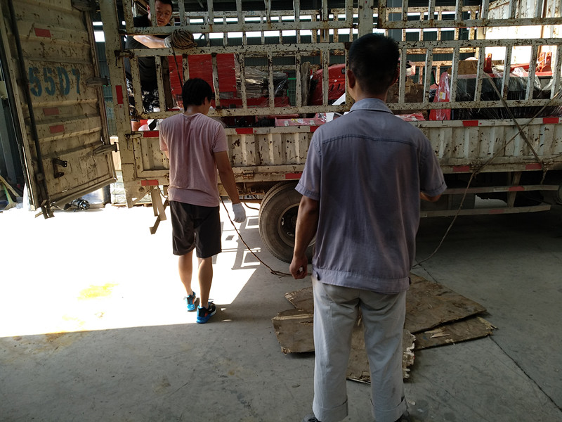 持续高温增加了发货的难度,但他们的工作进度却没有落下,他们配合着发货人员、货车司机将一辆辆的保东果园管理机、果园配套管理机具等有序地装进货车里。