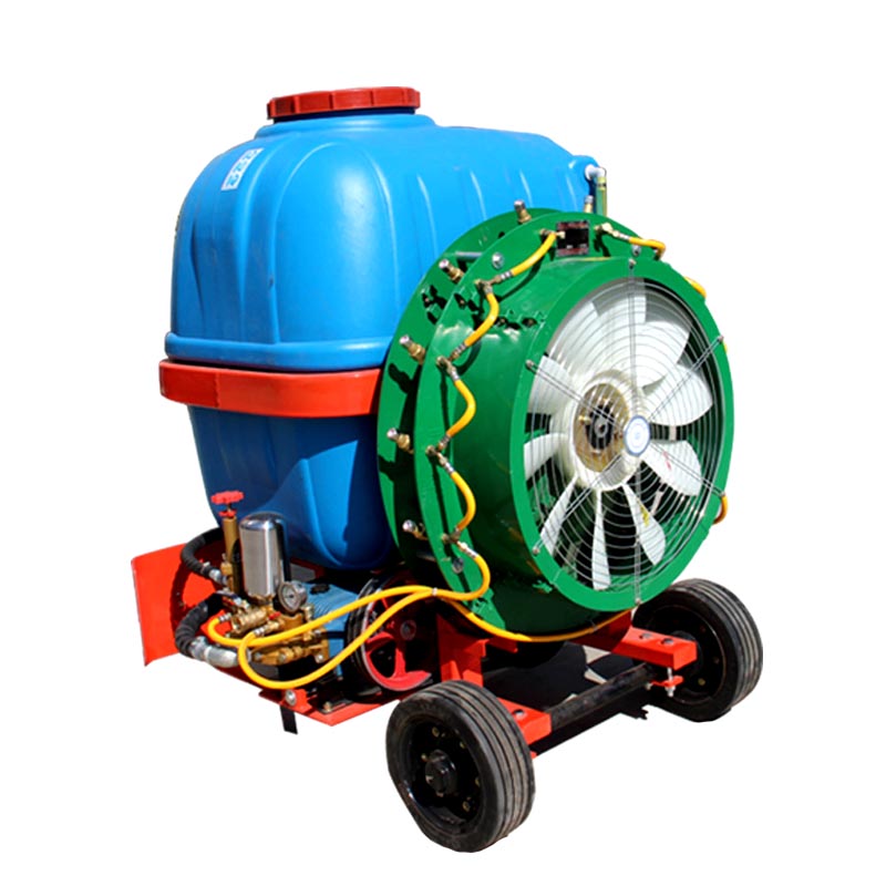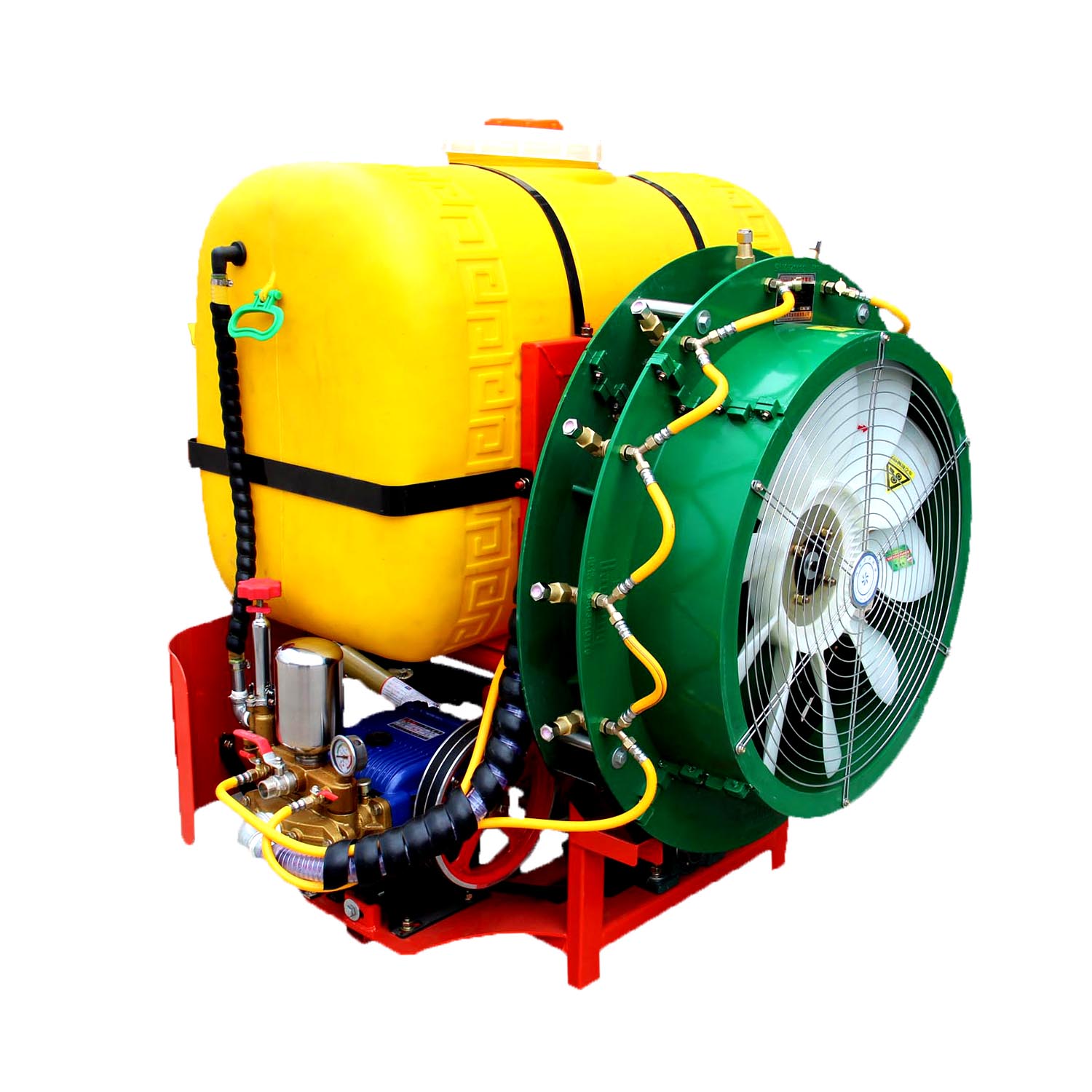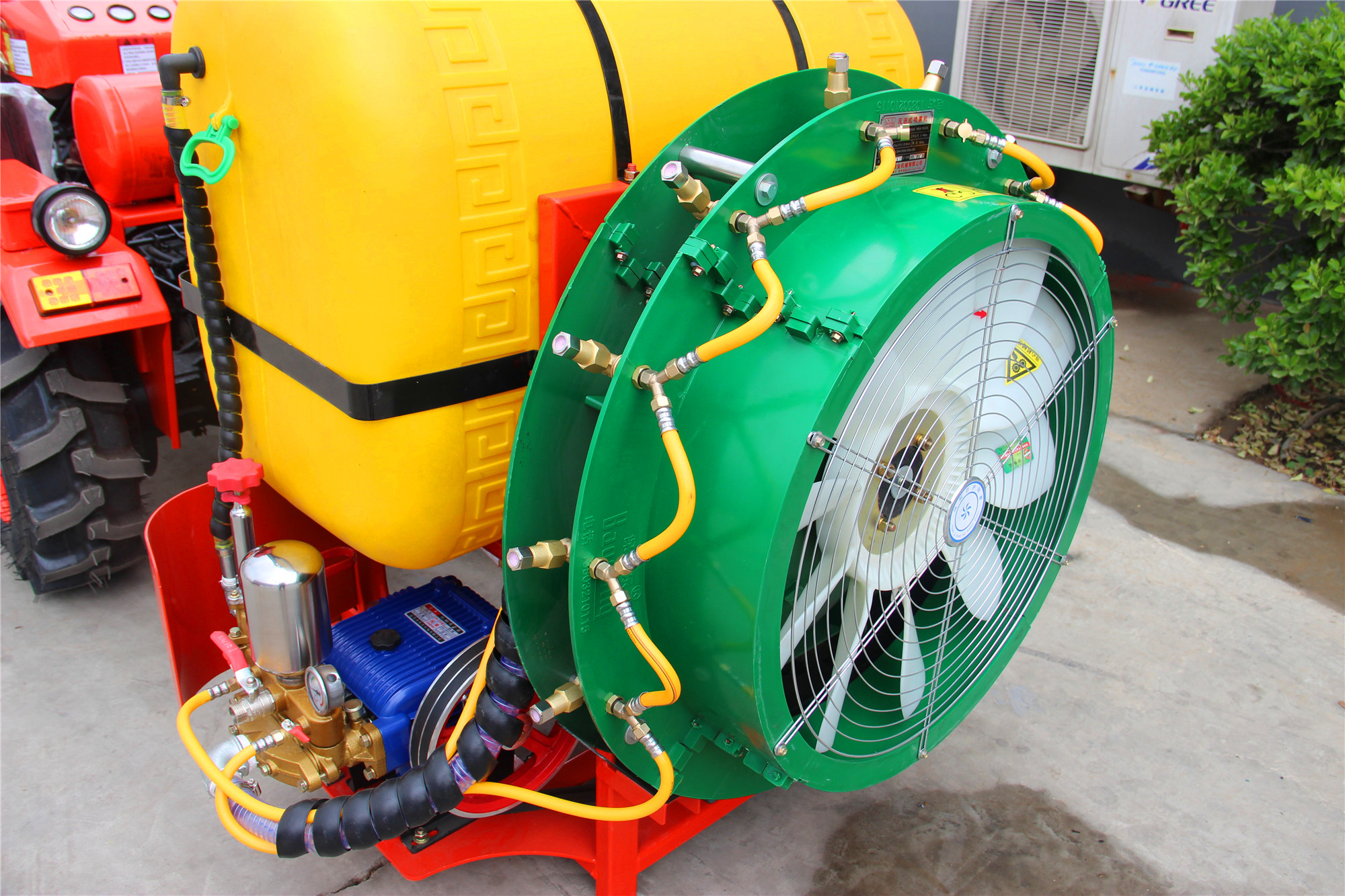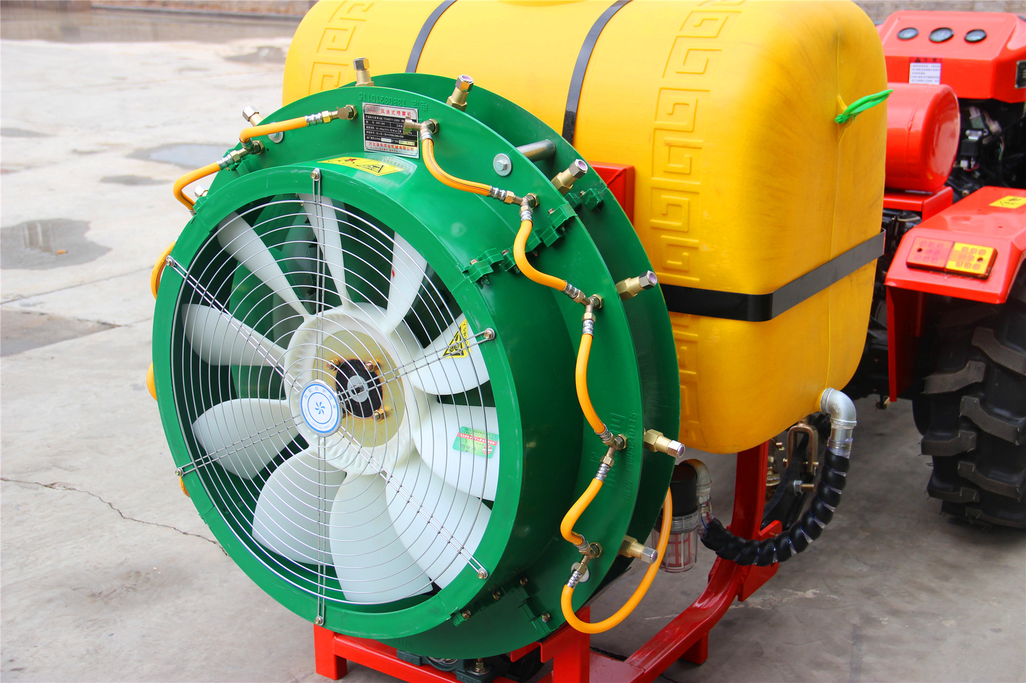 悬挂风送式喷雾打药机是通过三点式悬挂装置与拖拉机挂接,机身短在果园里操作方便。