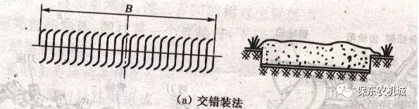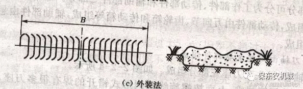 刀片都朝刀轴中间弯,该装法耕后中间有垄,起填沟作用。